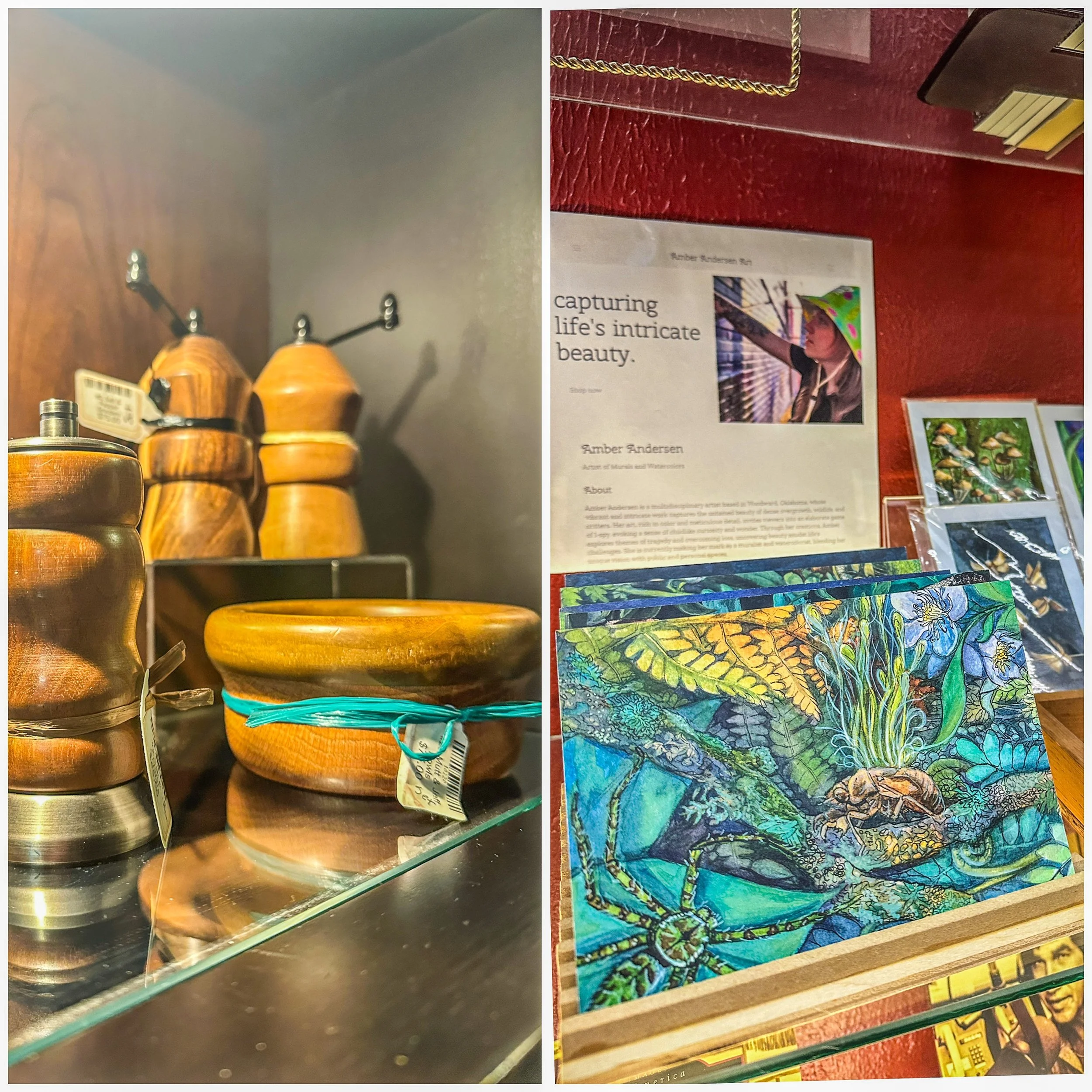 We have many local and state artists, crafters and craftsmen that have different items for sale. You may find some art prints, stickers, postcards, pins, jewelry, stained glass, handcrafted wood items, and more!